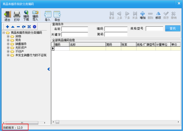 如果您的软件版本号不是V2.1.30.161225,税收分类编码表版本号不是12.0,按照以下方法进行版本升级: